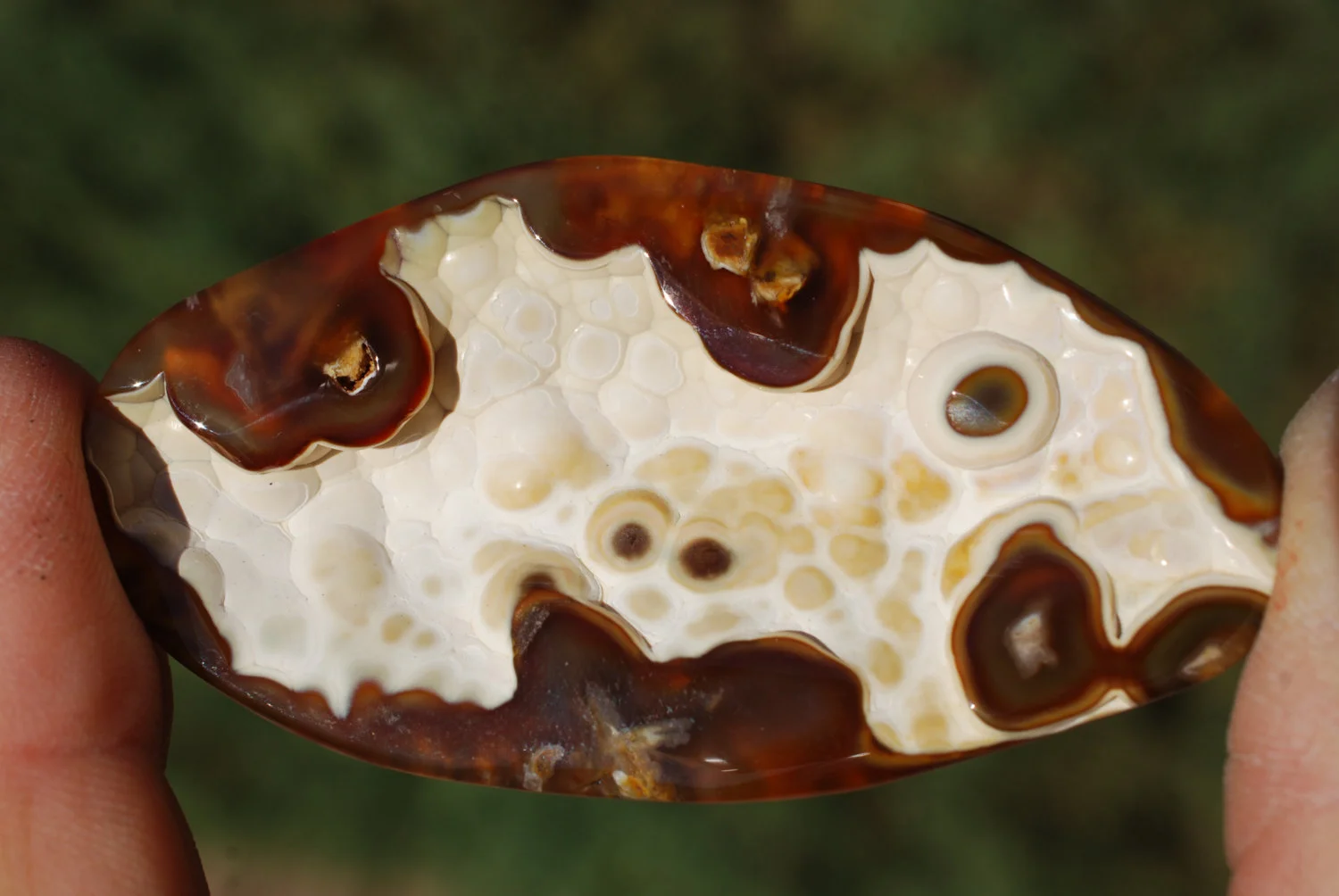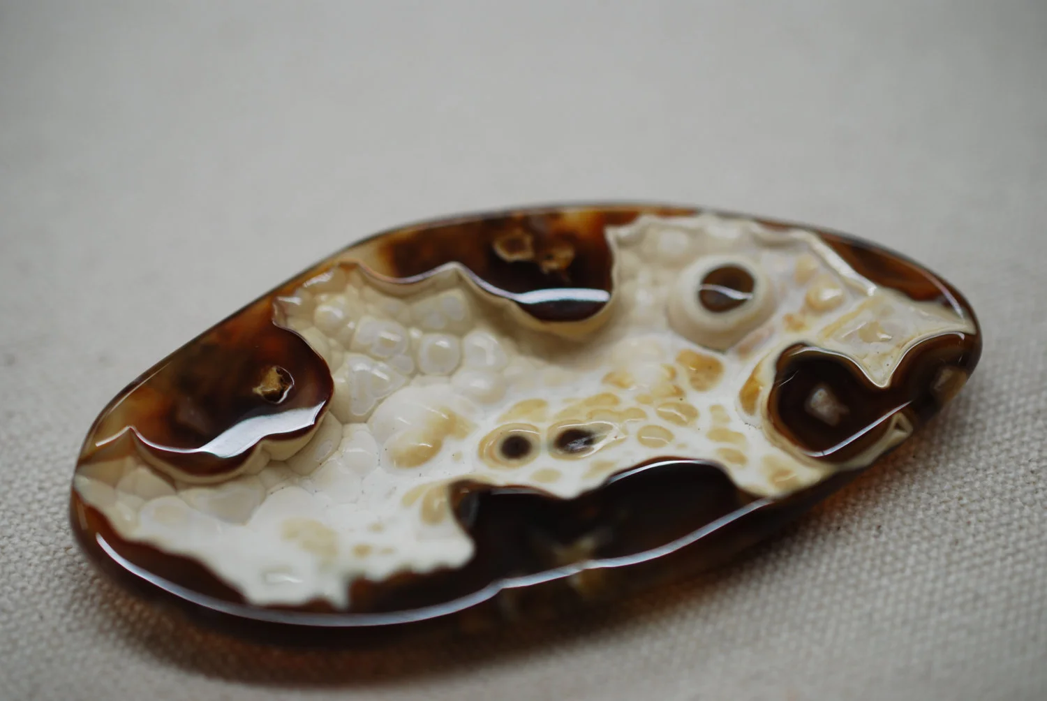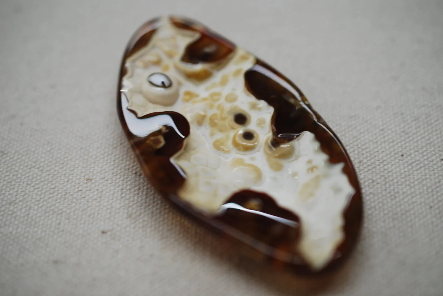 Fossilized Coral from Florida. The center indents and gives a nice depth to add extra character. Polished on all sides, great for wire wrapping, bezel or prong set.