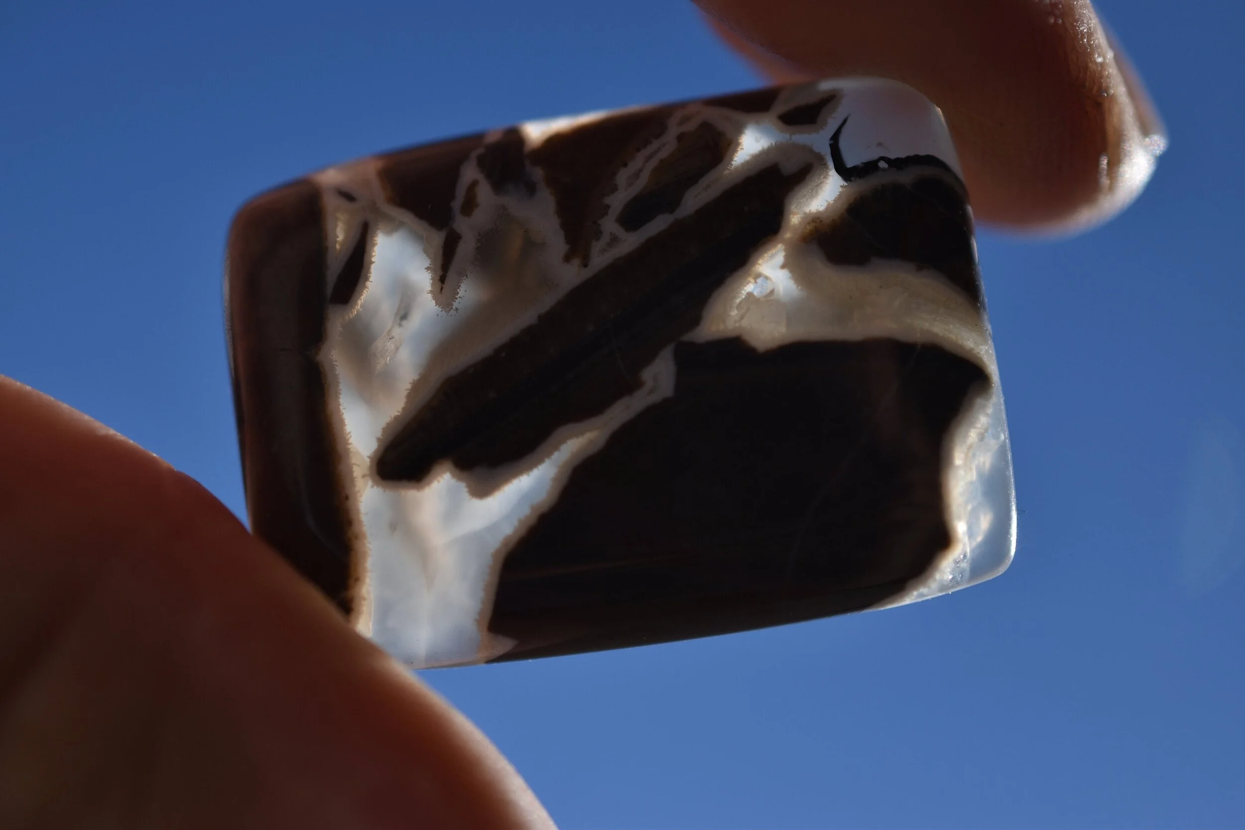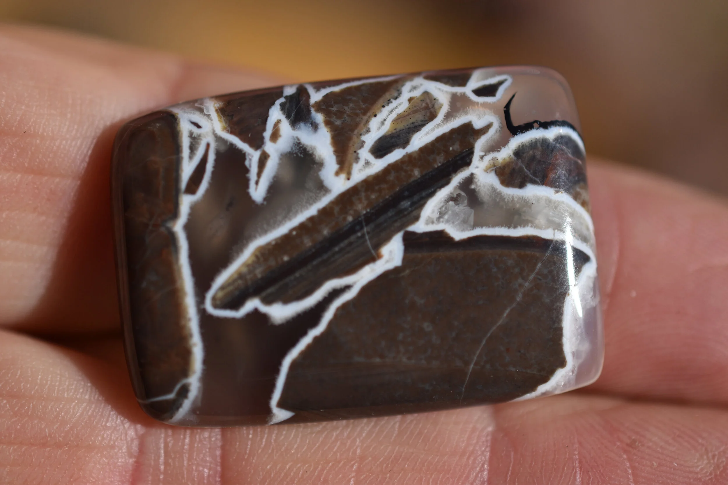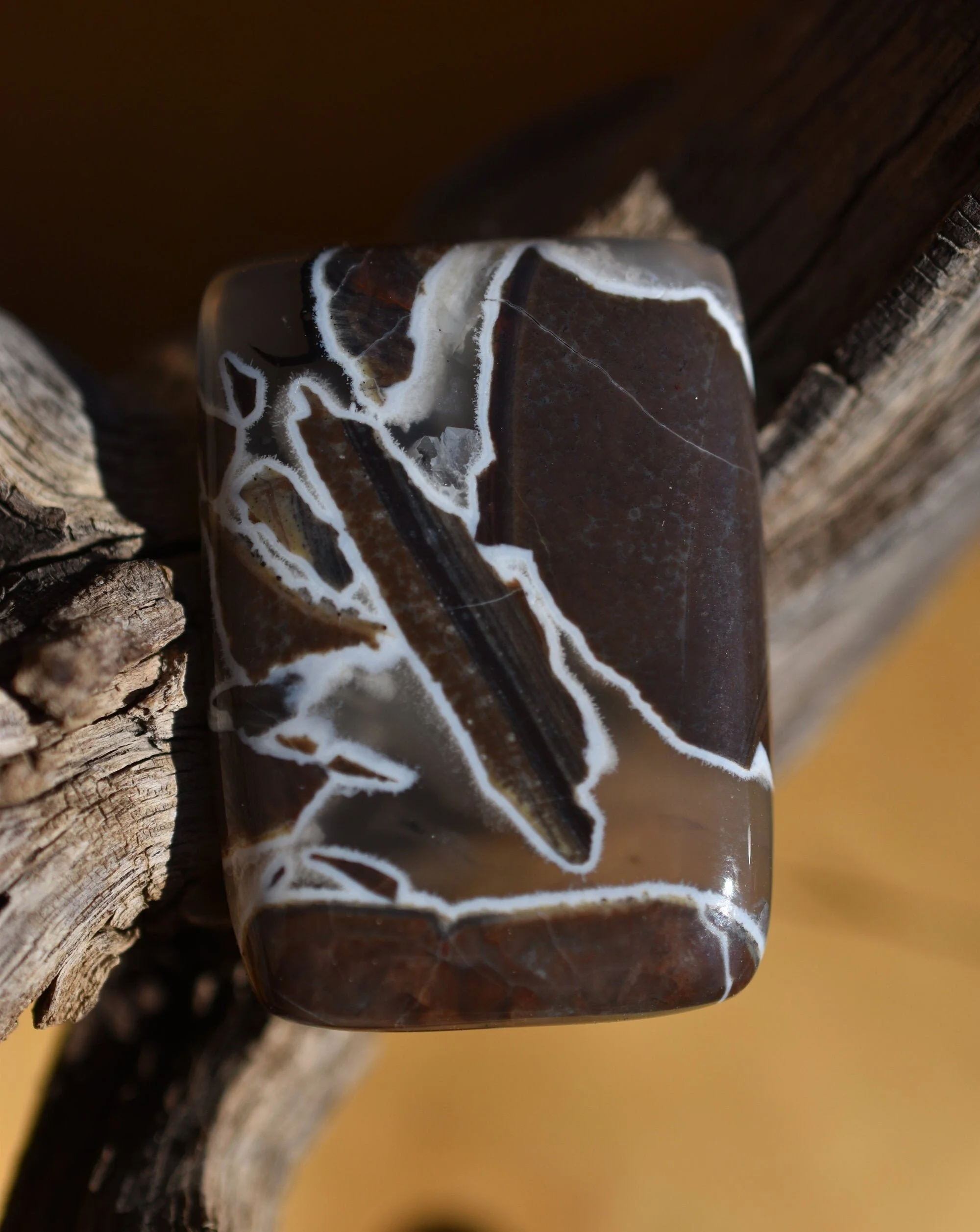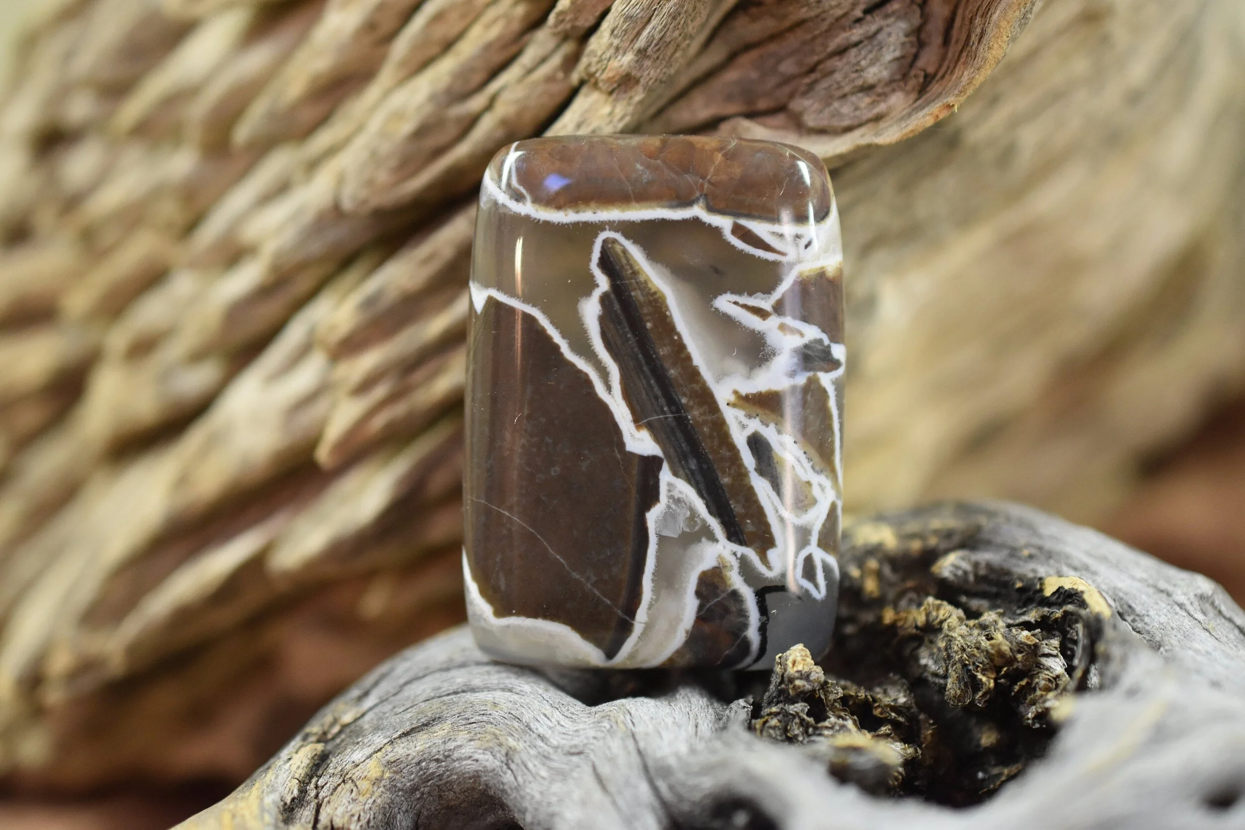 This gorgeous piece of Brecciated Jasper Agate was so stunning, we had to name it. "Feather in the stream" fit quite well, we think. This piece would make a beautiful pendant for a necklace or bracelet.