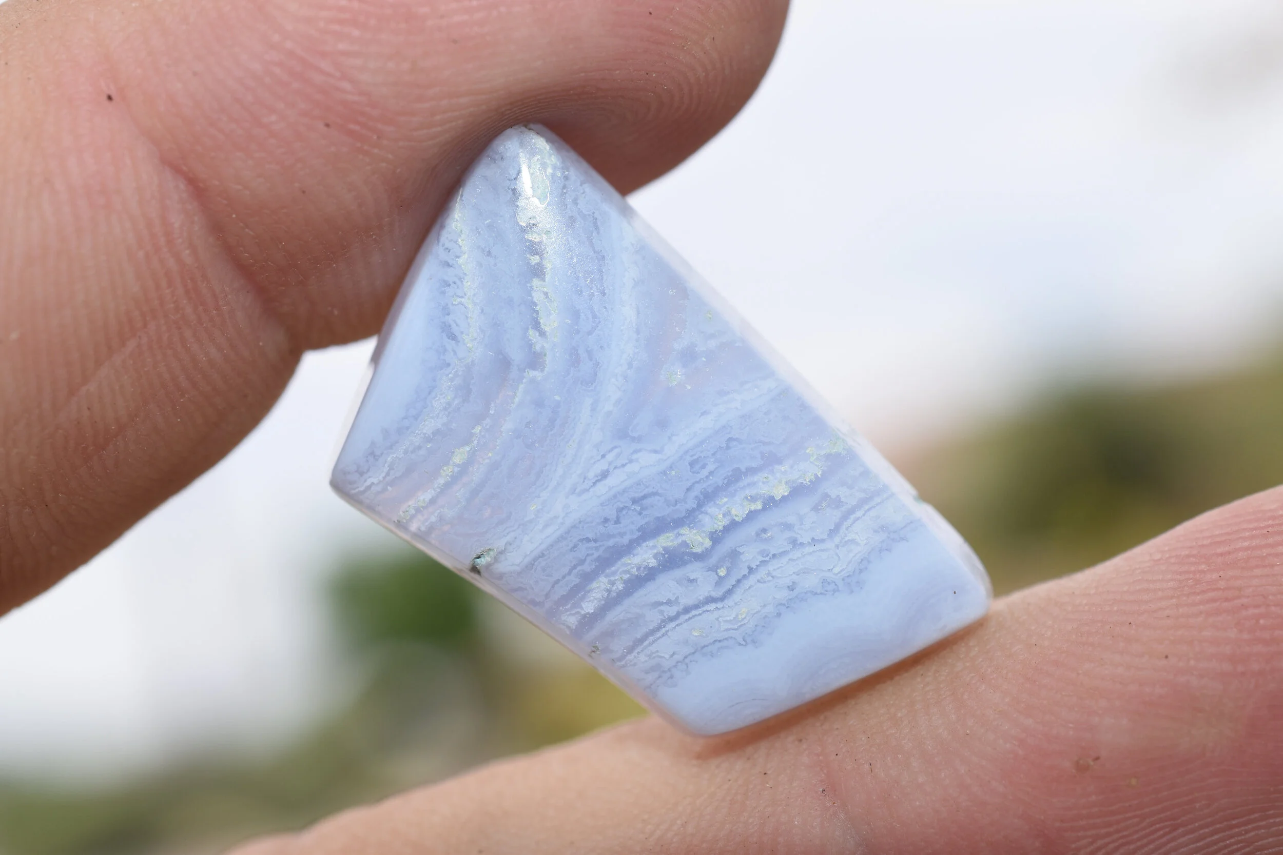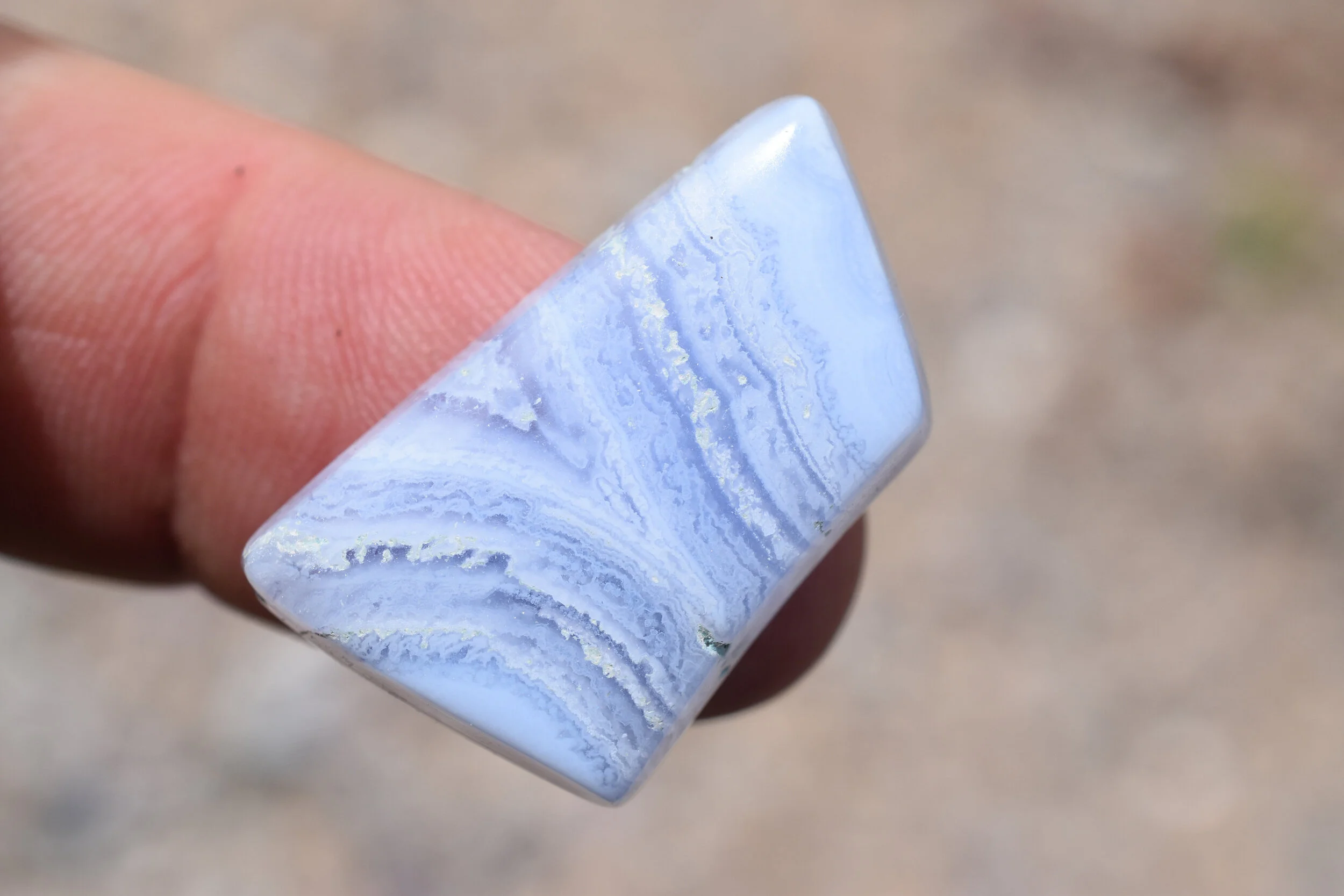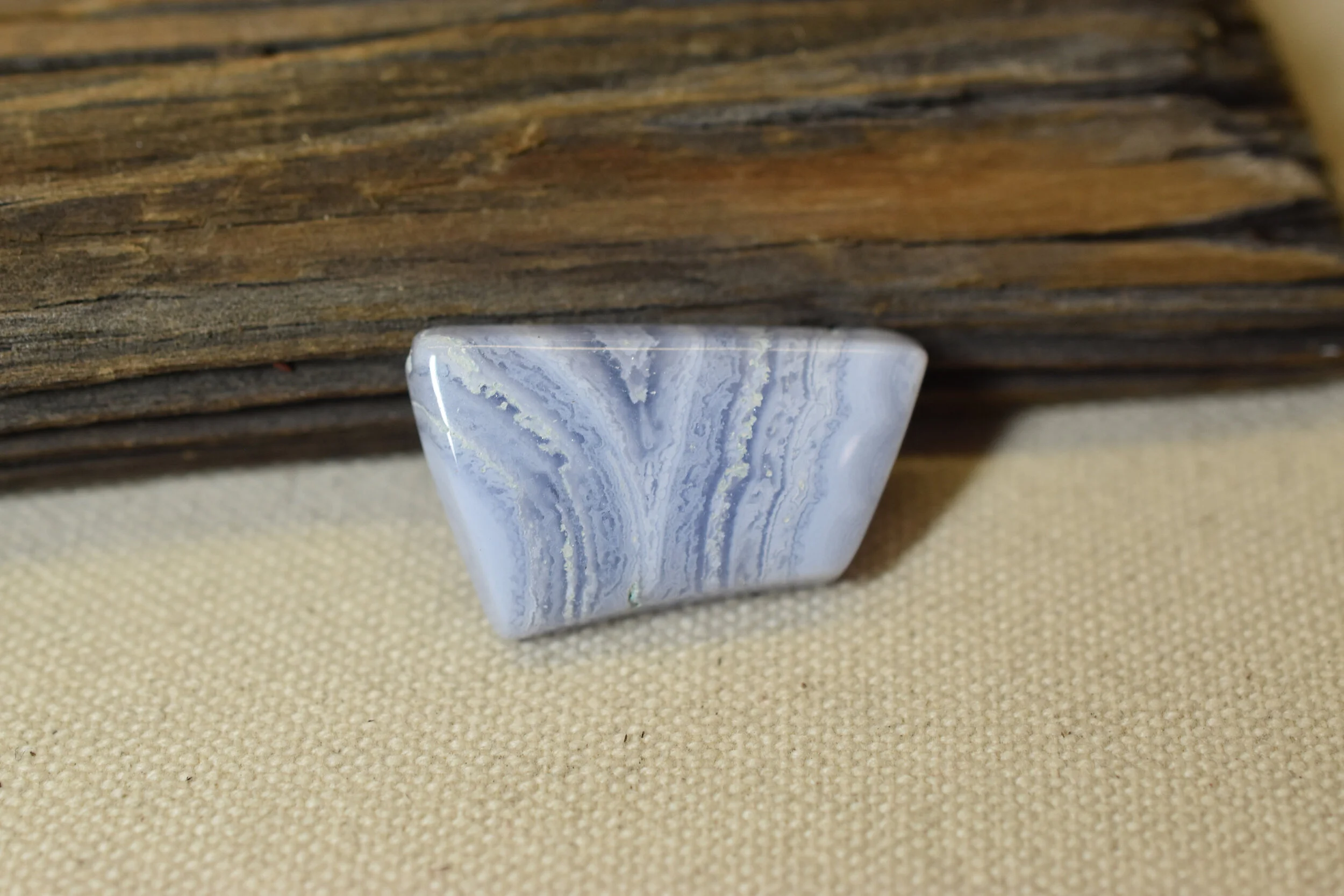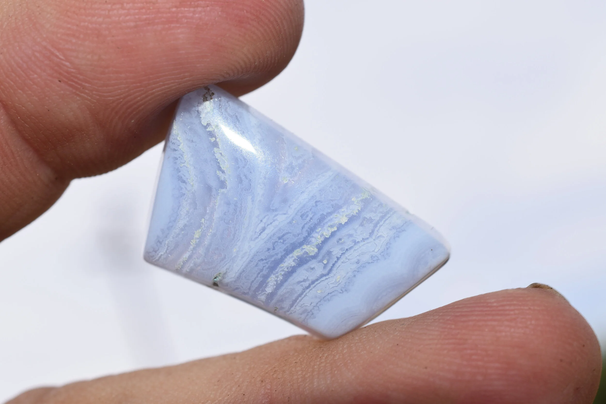 Designer cabochon of Blue Lace Agate from Namibia. Polished on all sides, great for wire wrapping, bezel or prong set.