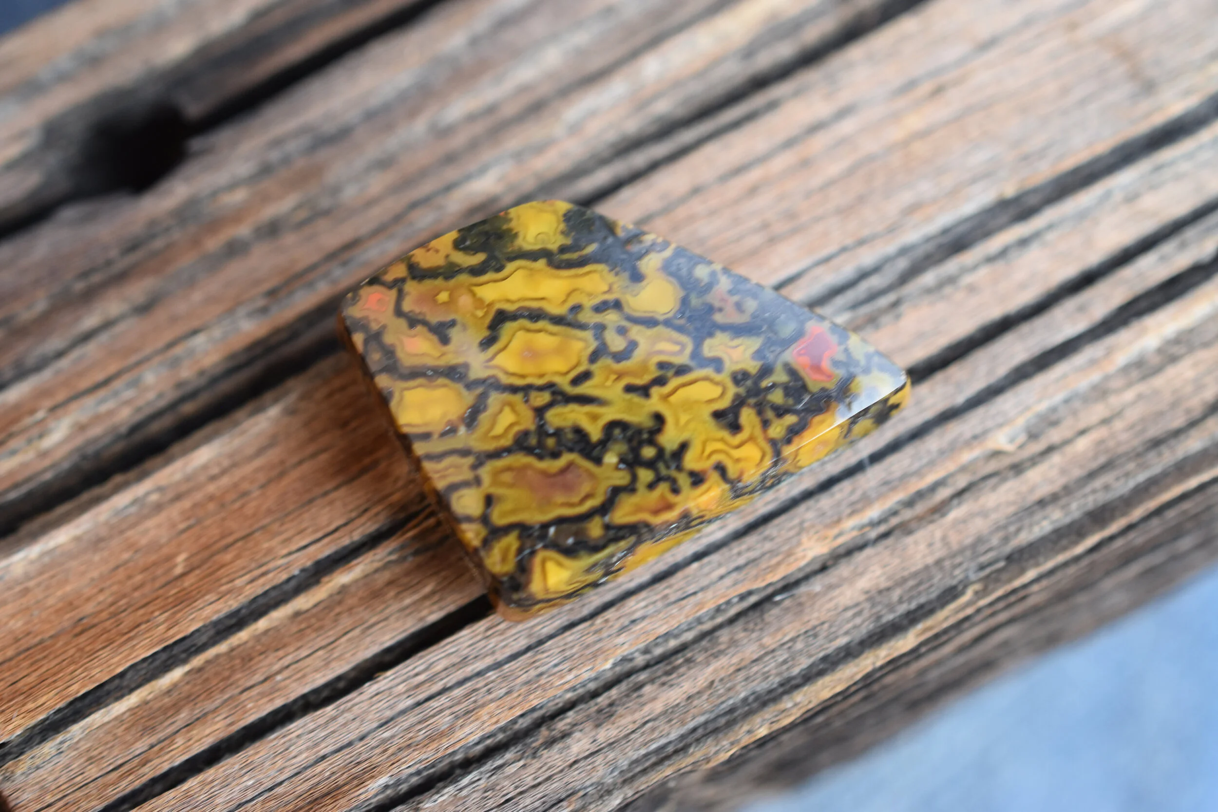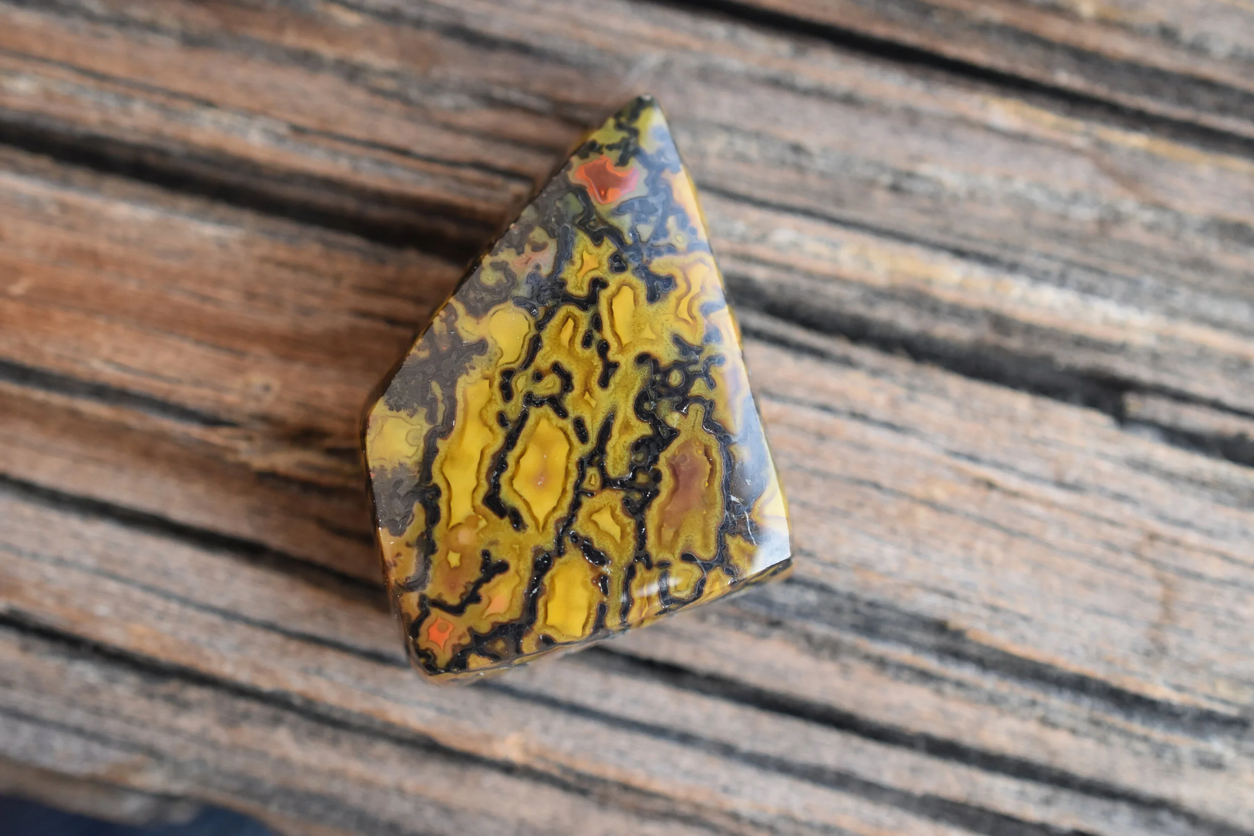 Petite piece of Dino Bone from Utah. Polished on all sides, great for wire wrapping, bezel or prong set.