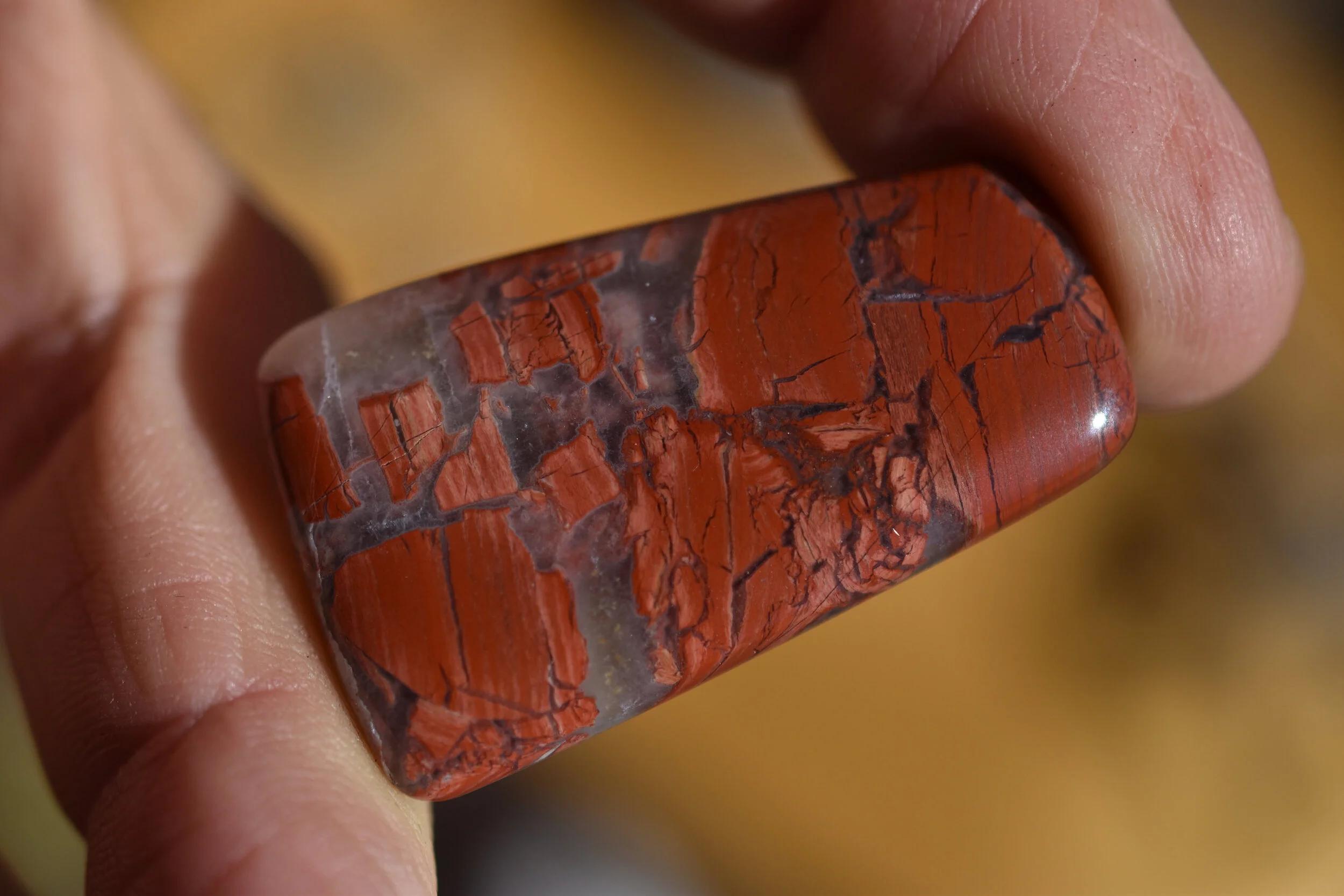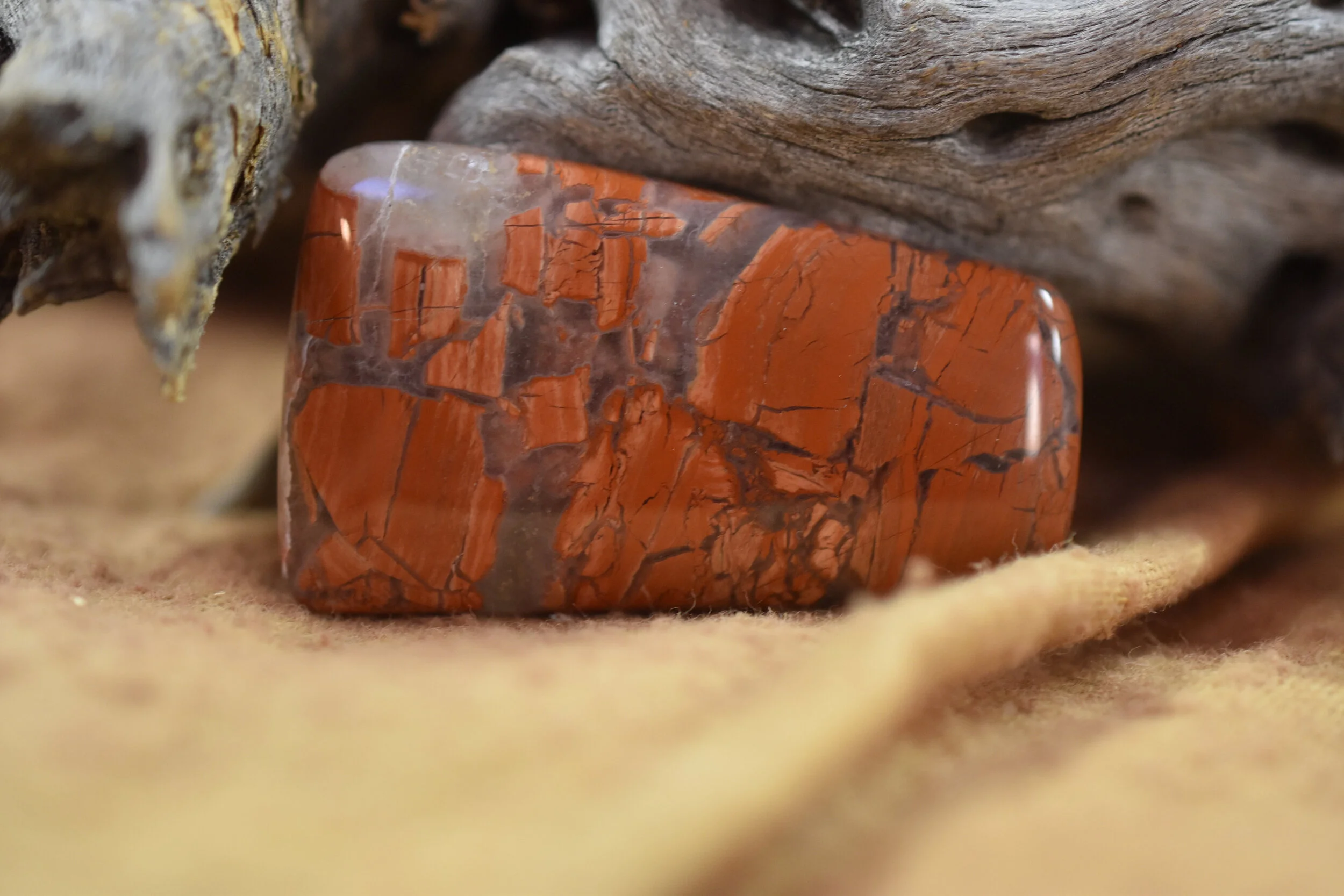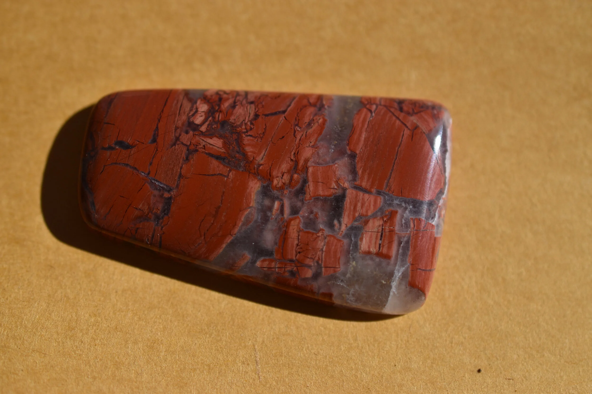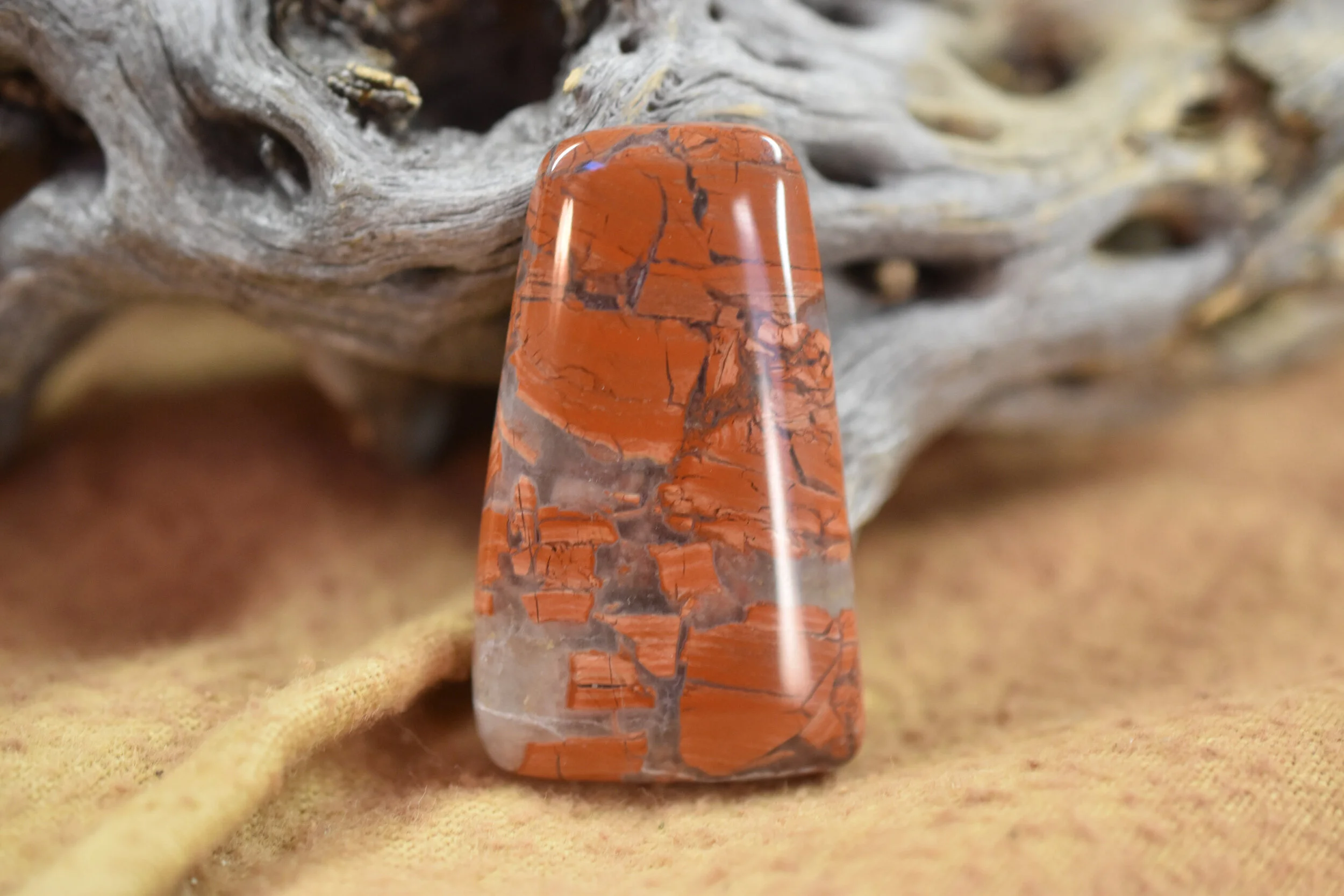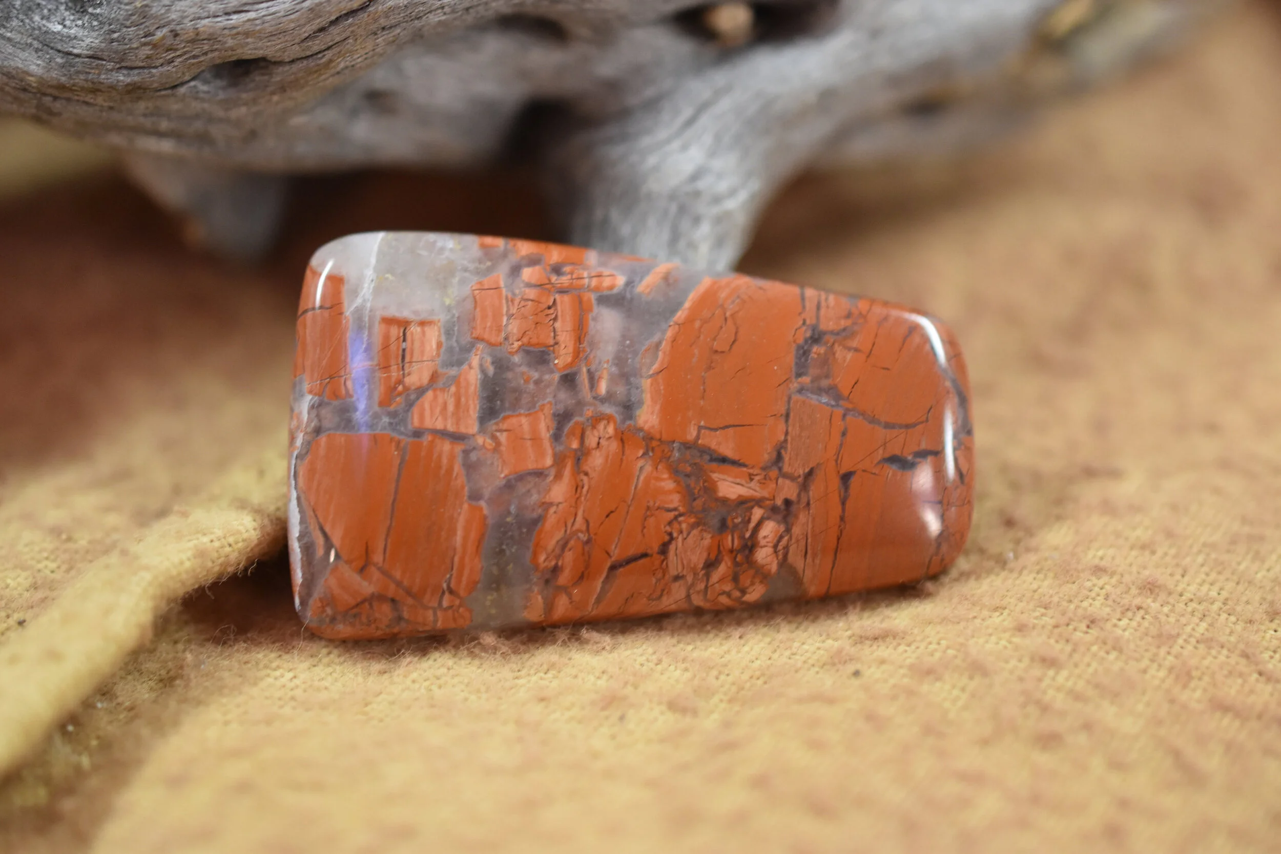 Free form designer cabochon of Painted Valley Jasper from Namibia. All sides are polished and would make a great pendant for necklace or bracelet.