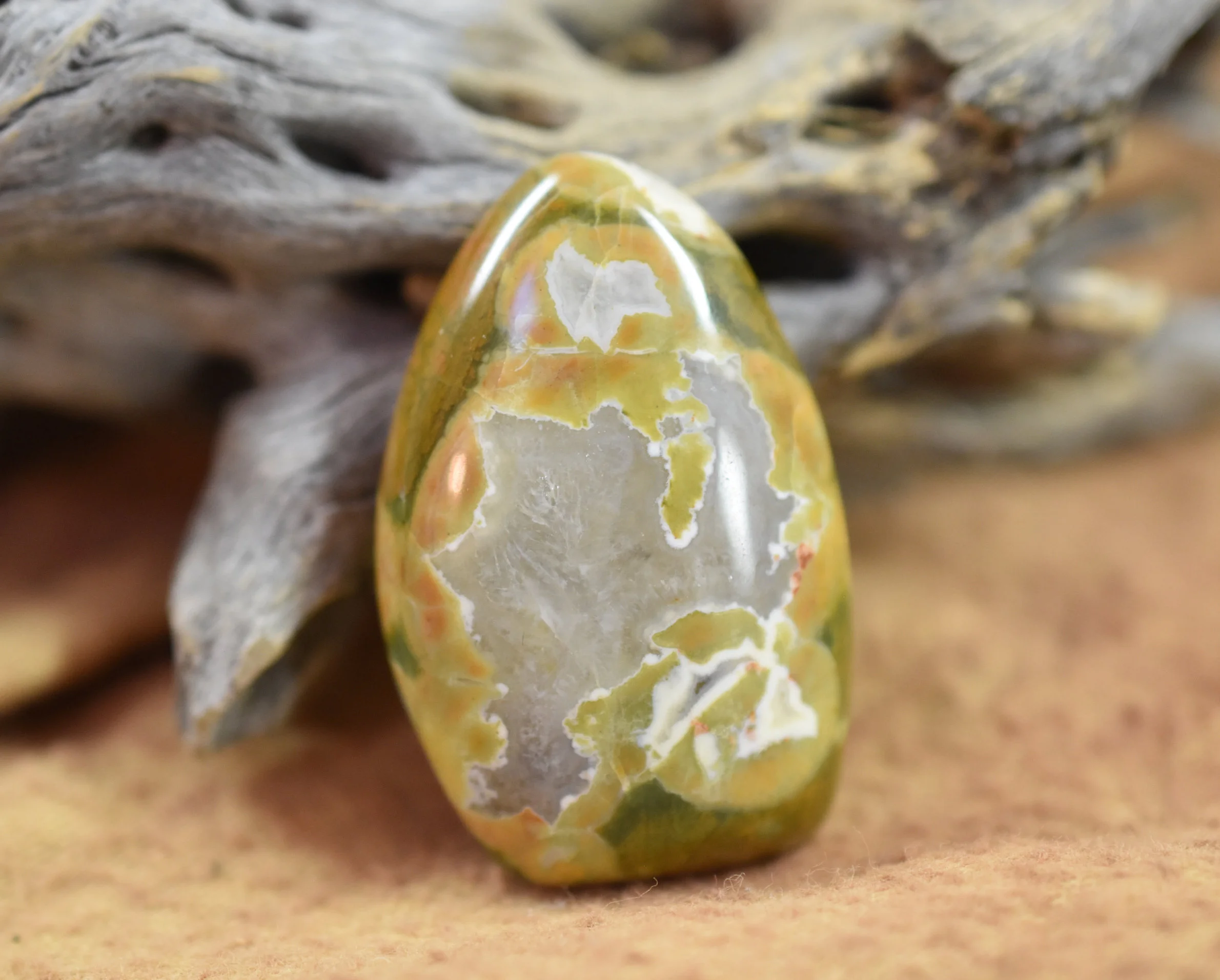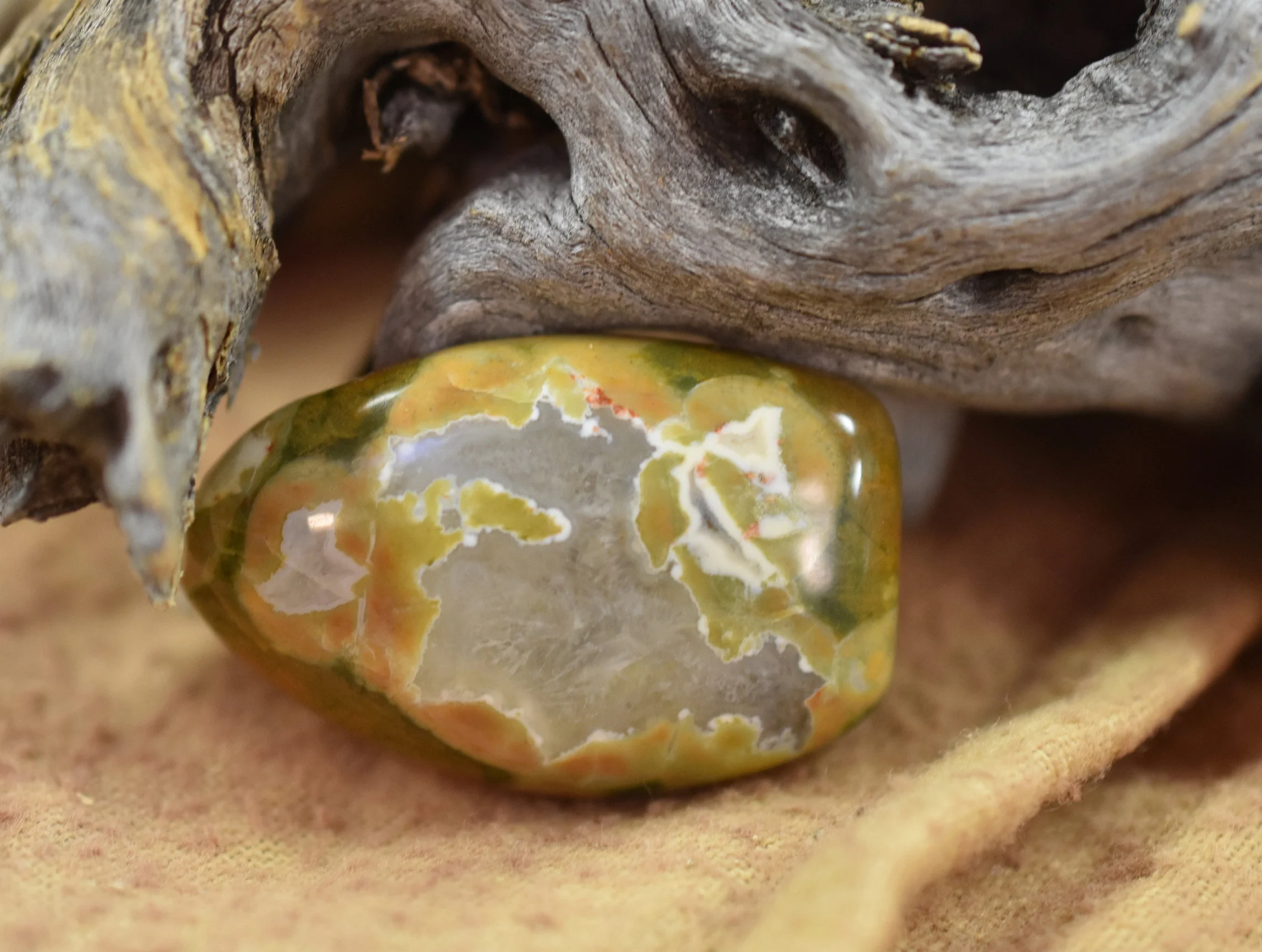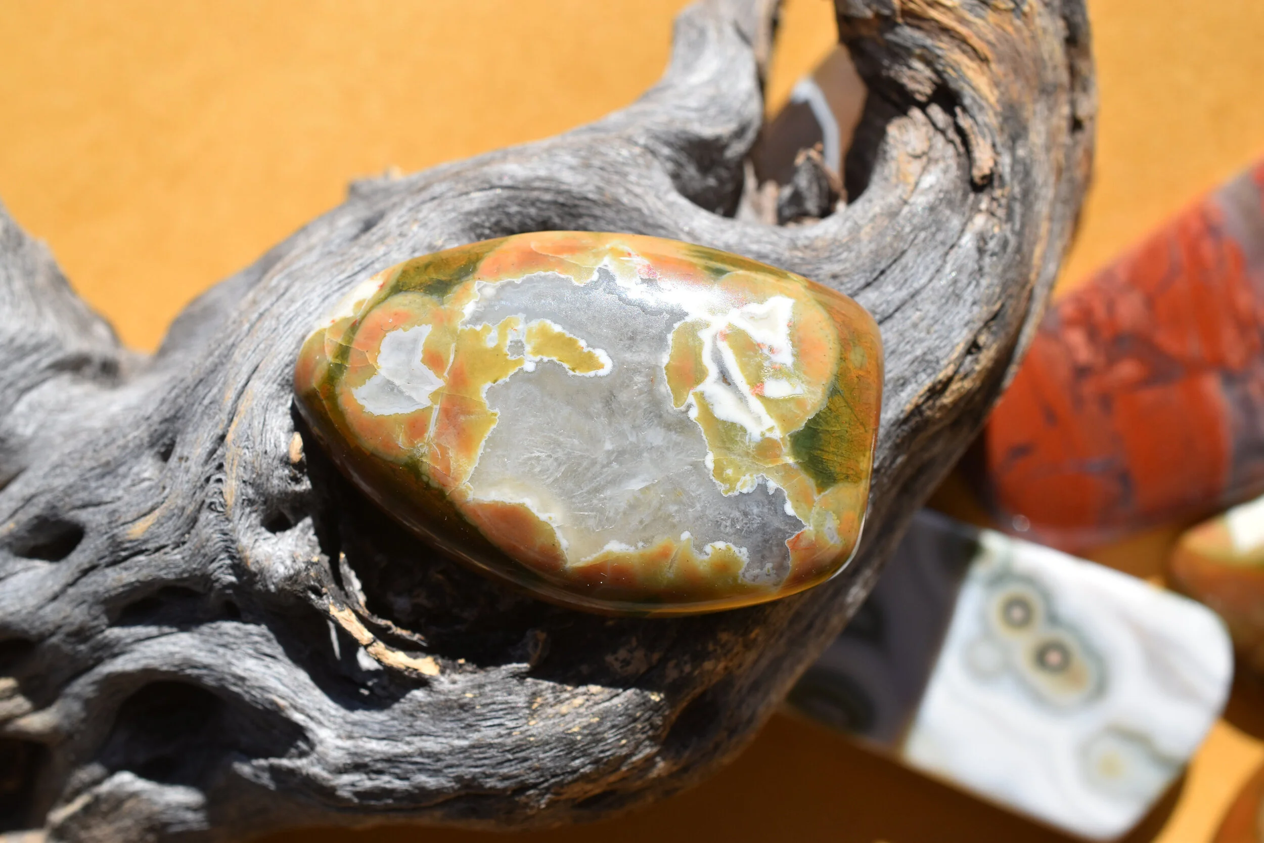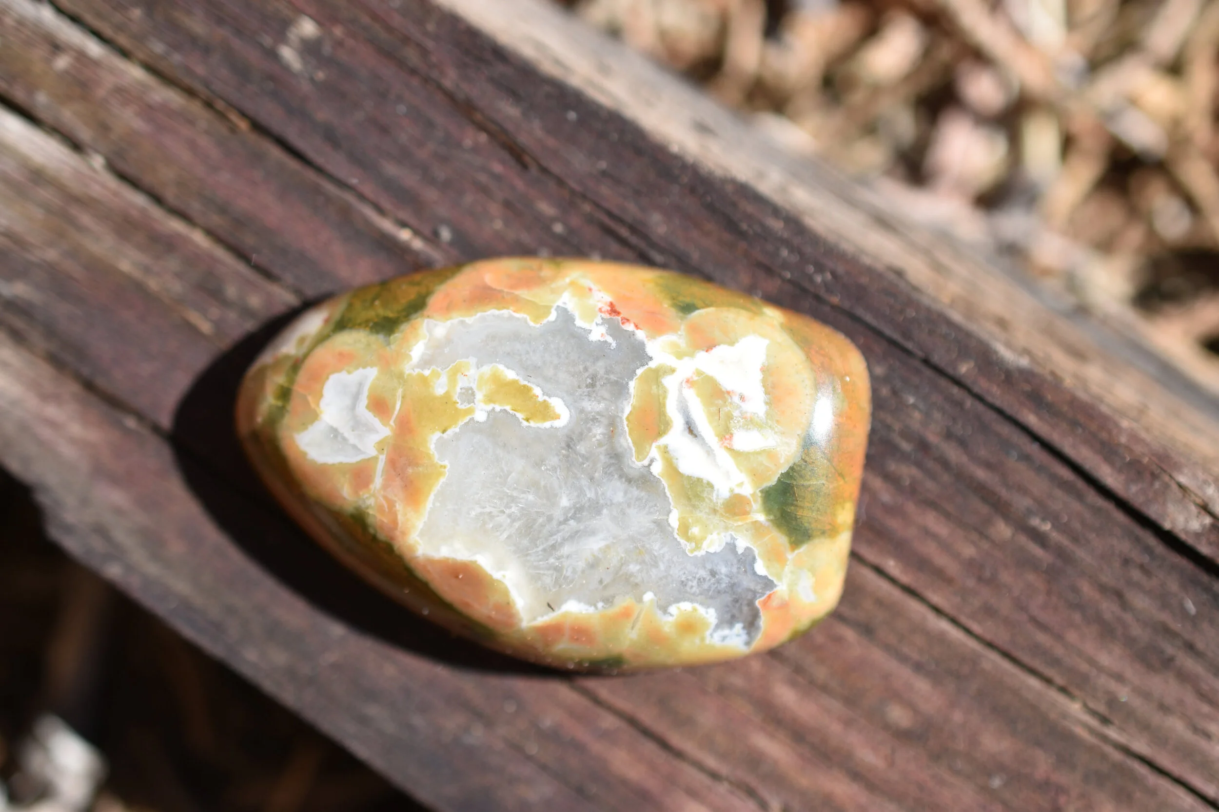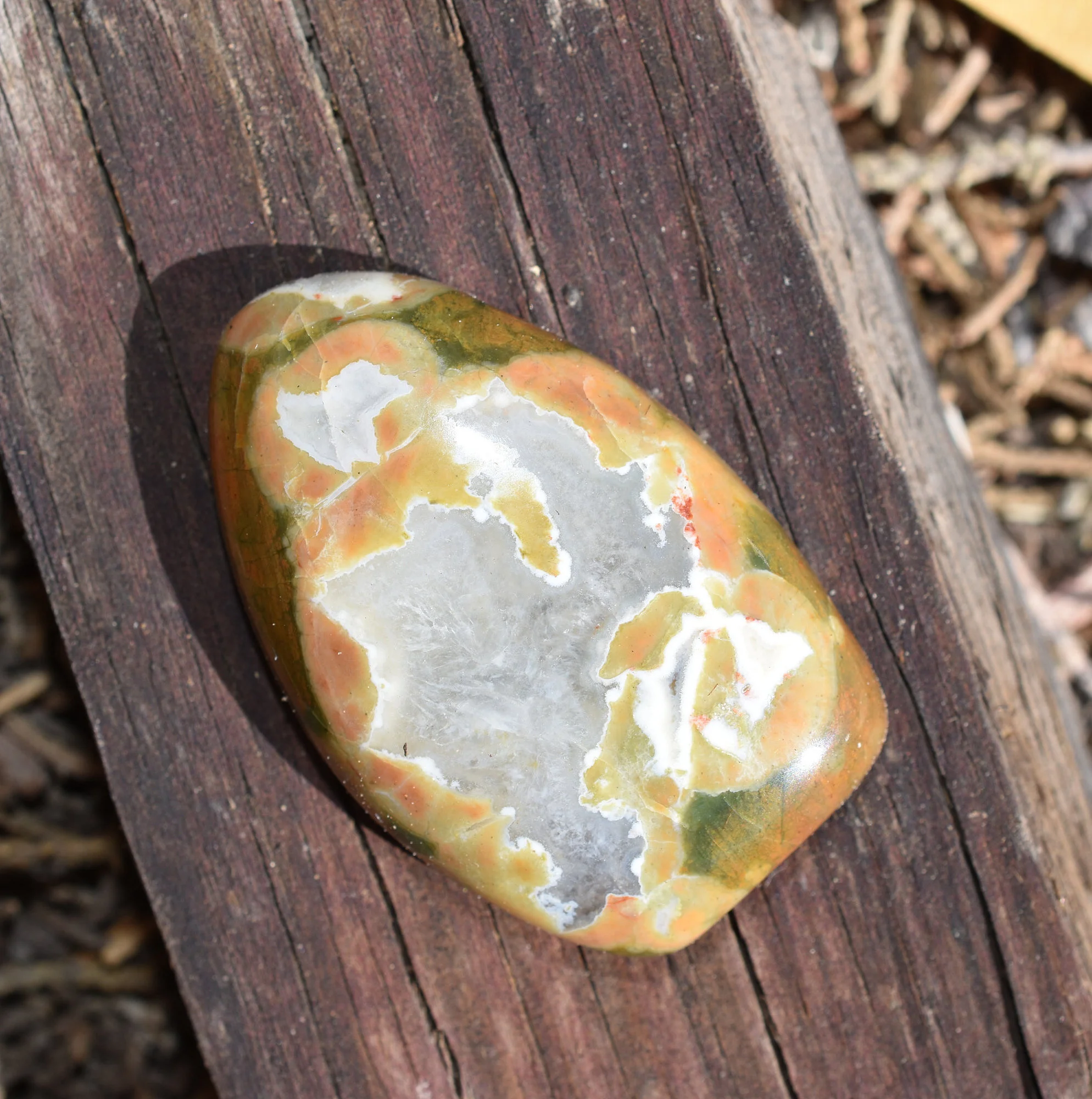 This unusual Rainforest Jasper from Australia has an Agate center that looks like a big pool of white water.
