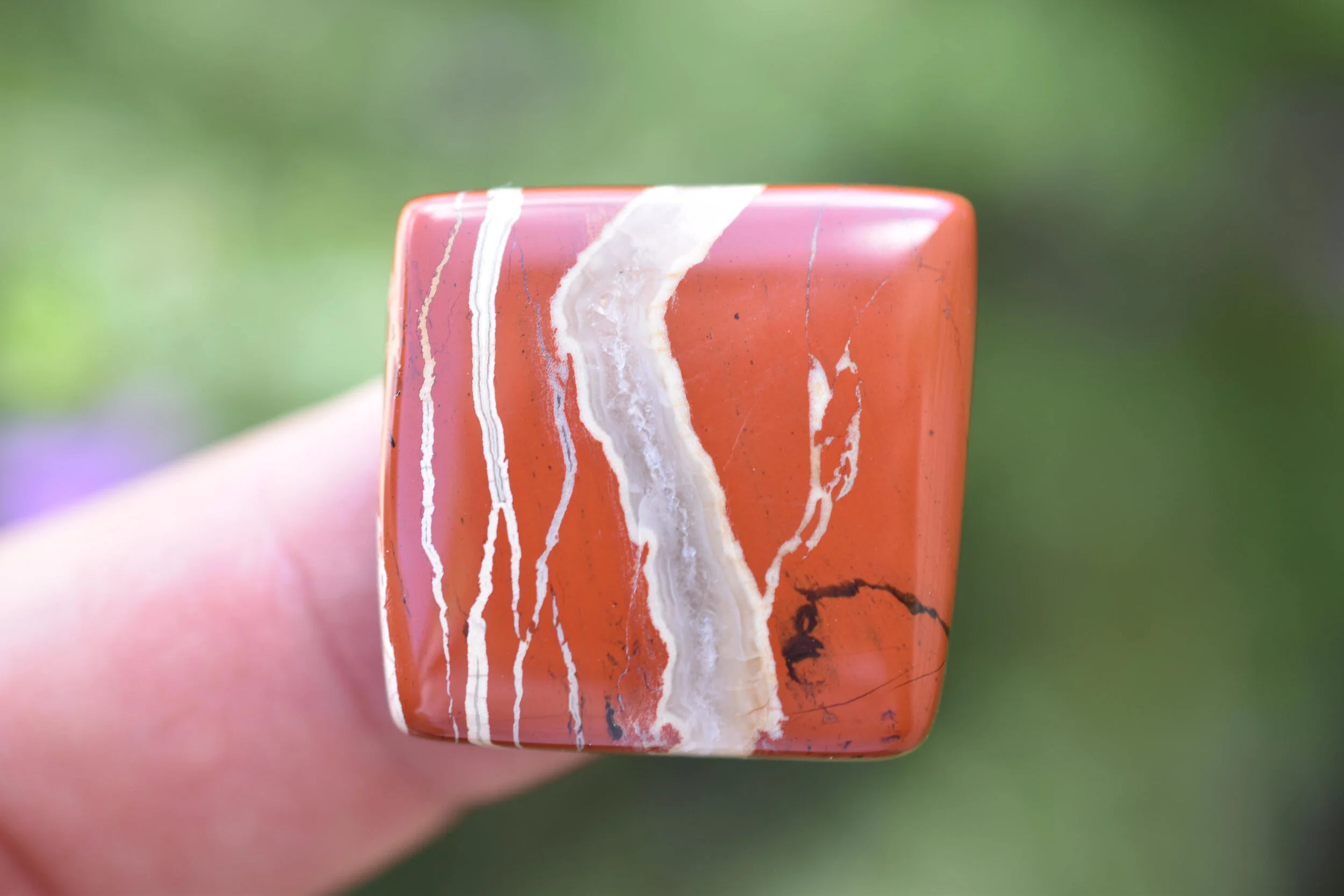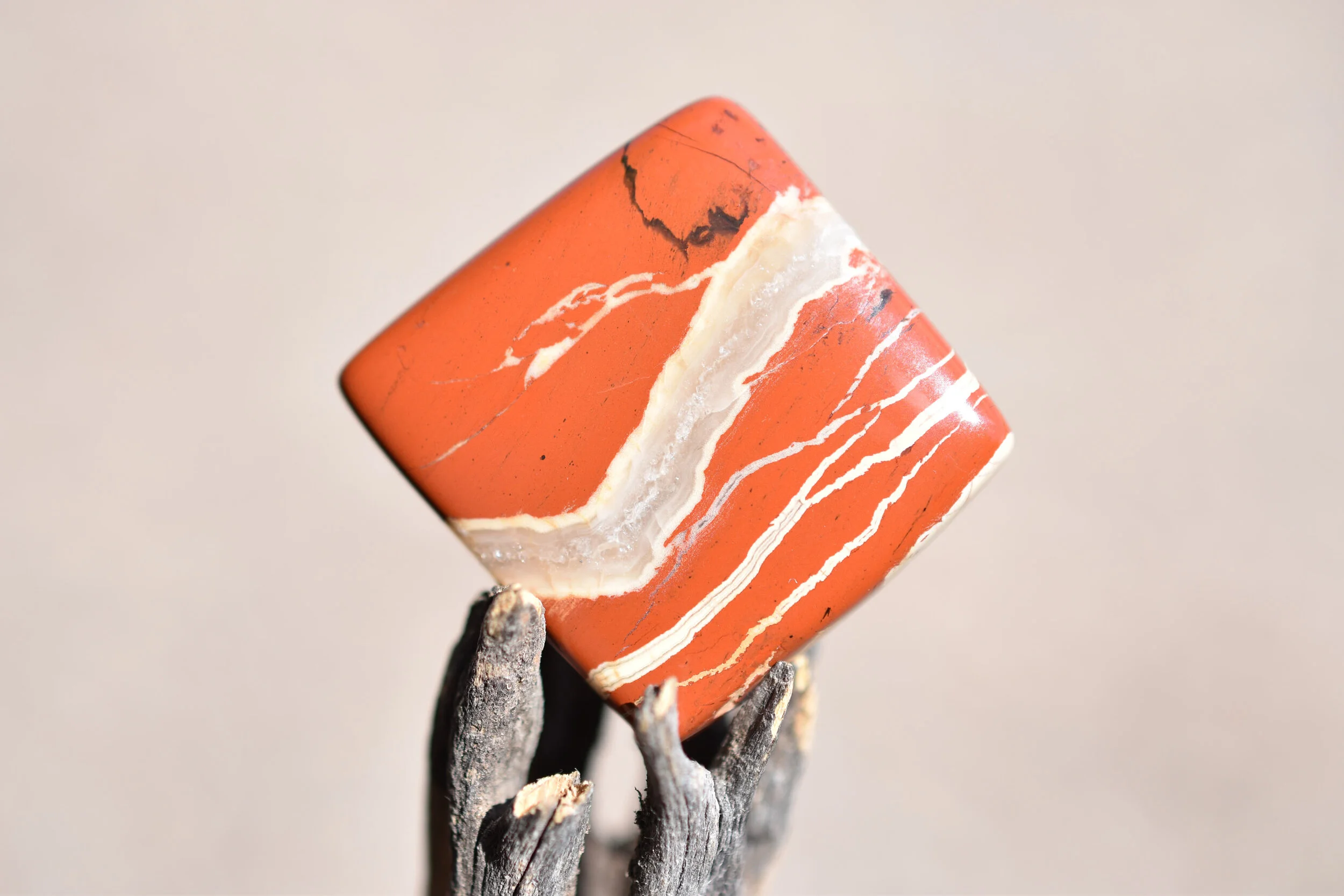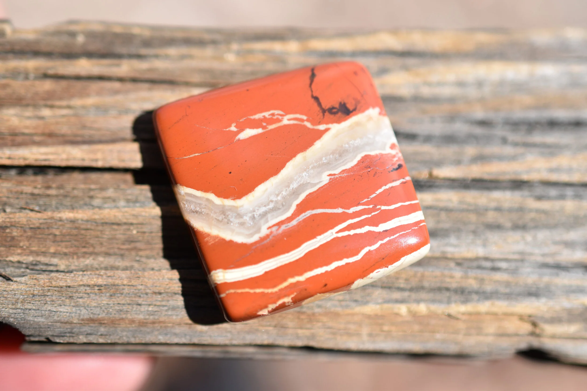 Red River Jasper from South Africa. Polished on all sides, great for wire wrapping, bezel or prong set.
