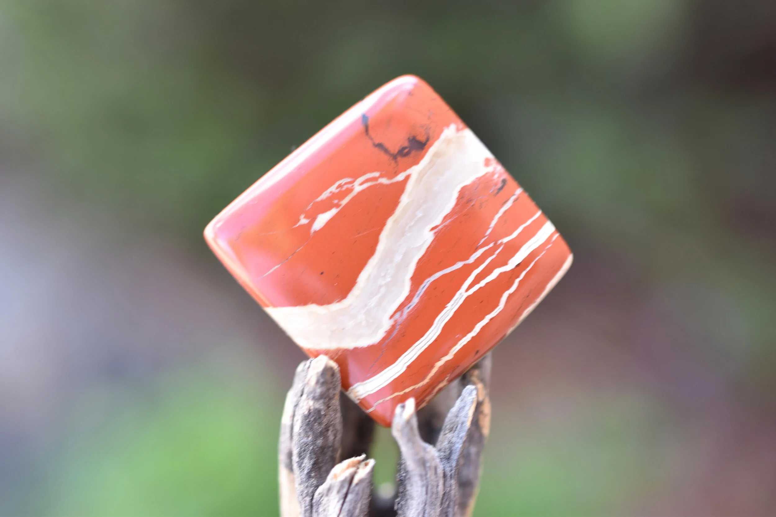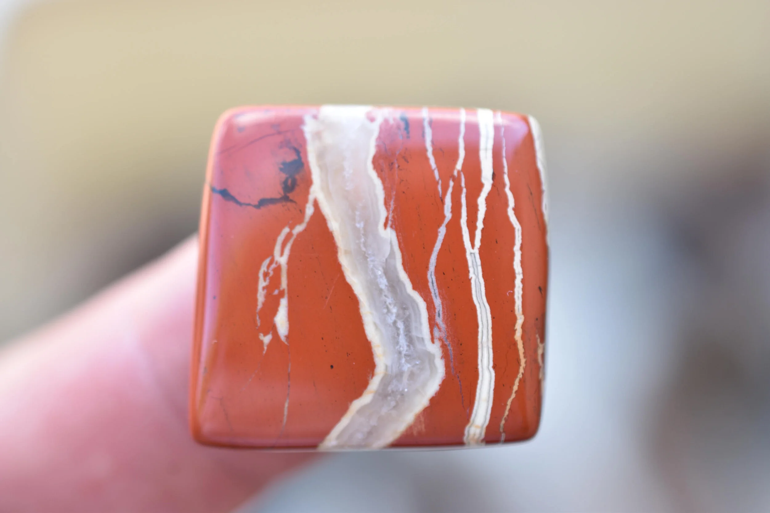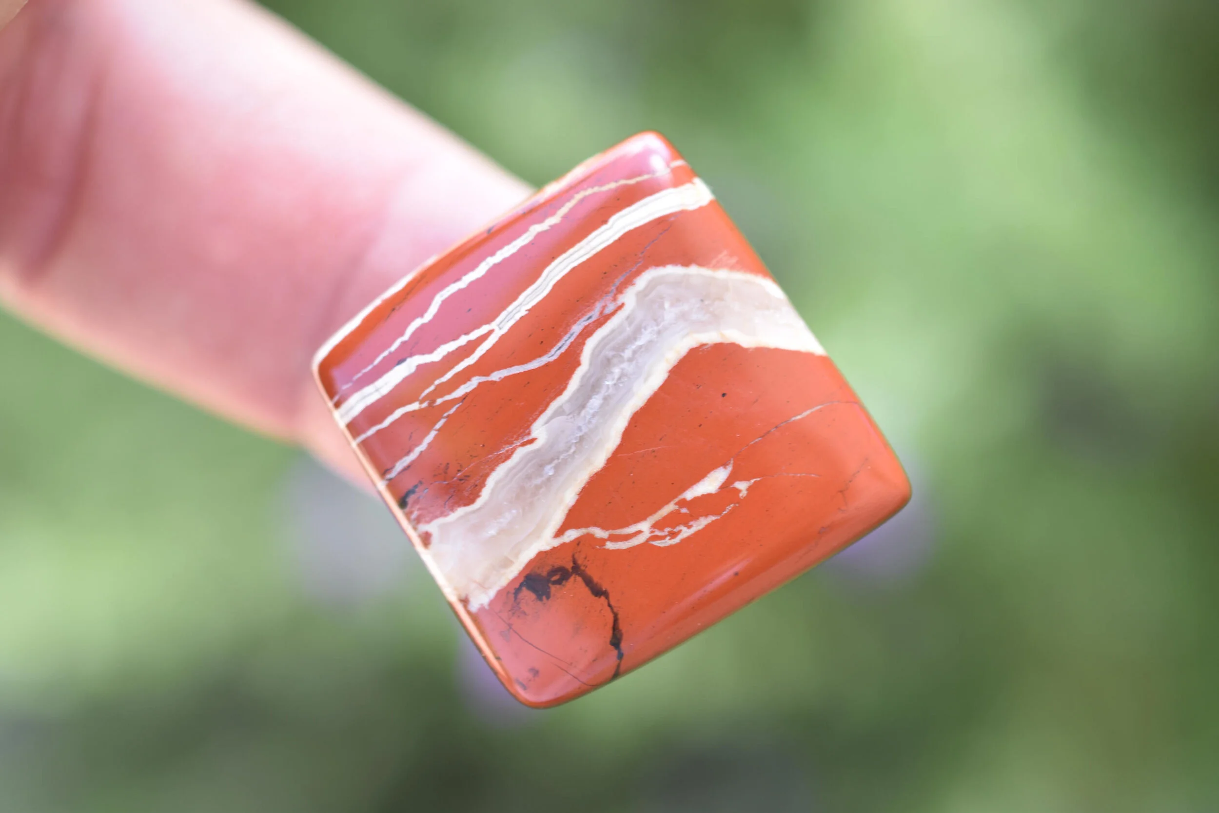 Red River Jasper from South Africa. Polished on all sides, great for wire wrapping, bezel or prong set.