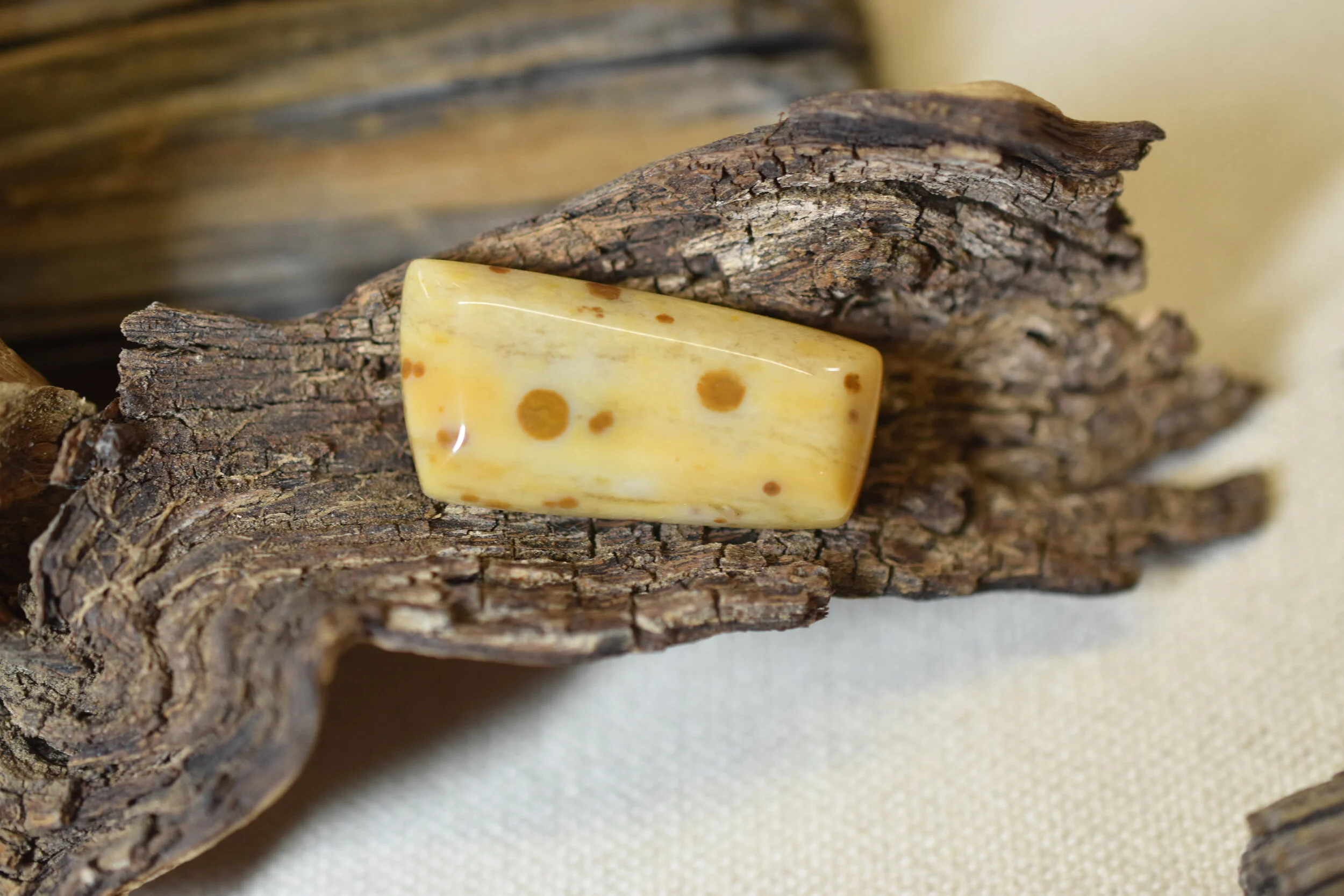 Polka Dot Agate from Oregon. This petite piece would be the perfect centerpiece on a bracelet or ring, it is polished on all sides, great for wire wrapping, bezel or prong set.