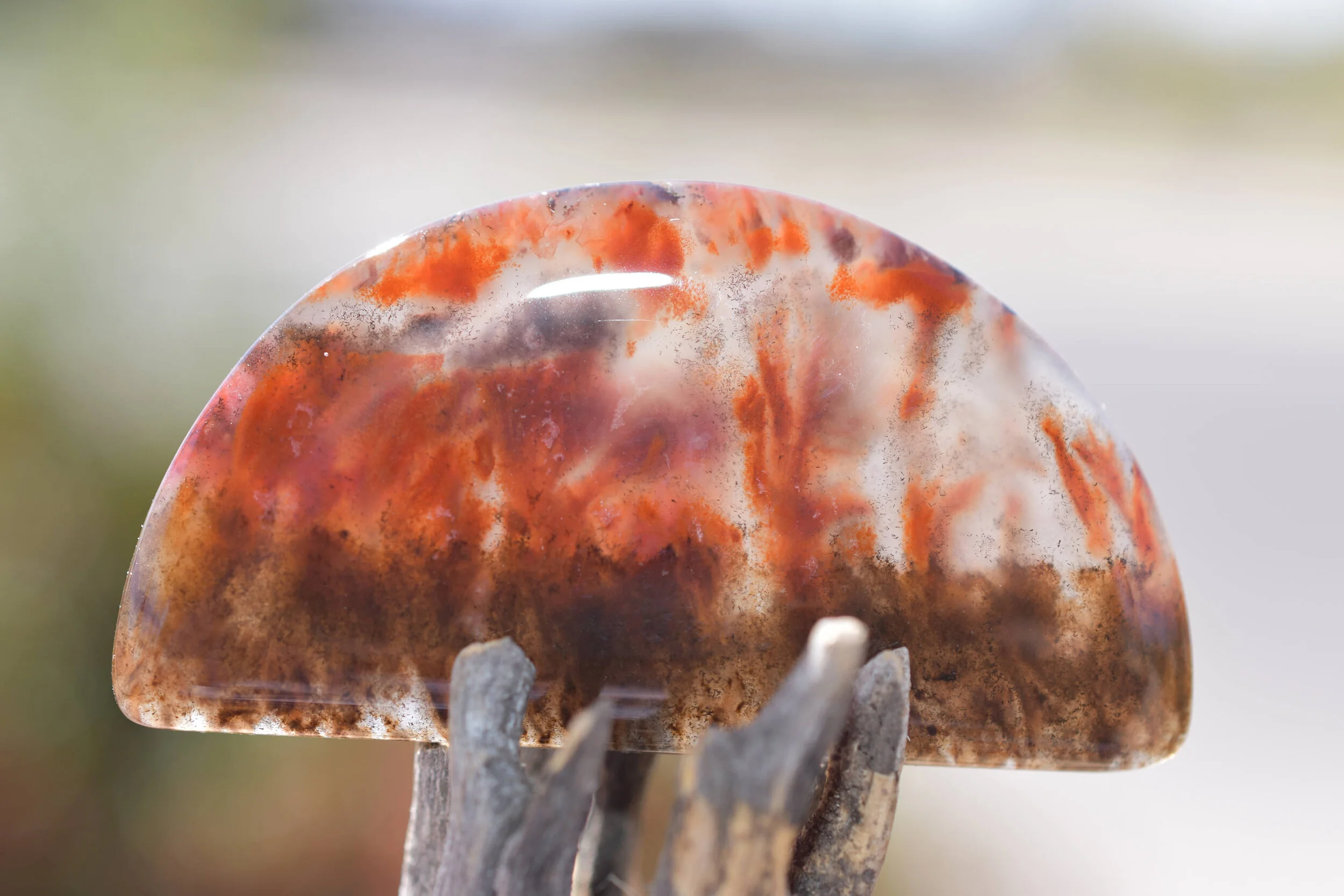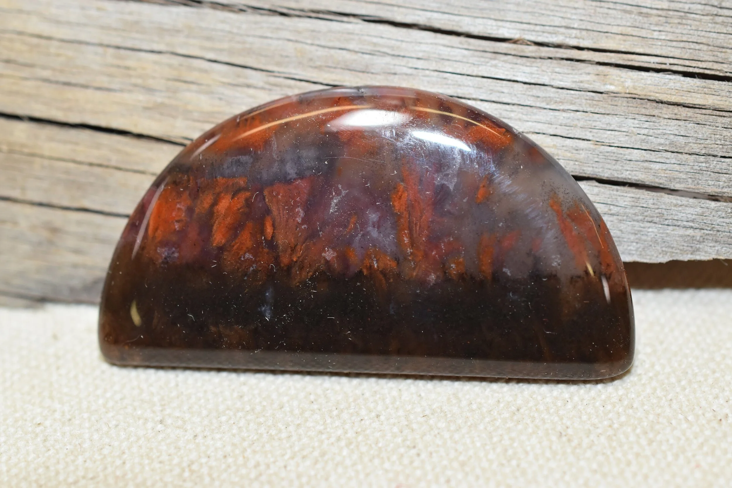 Beautiful cabochon of Red Flame Agate from Chihuahua, Mexico. This piece comes alive in natural outdoor lighting. It would make an amazing pendant for a necklace, all sides are polished, great for wire wrapping, bezel or prong set.