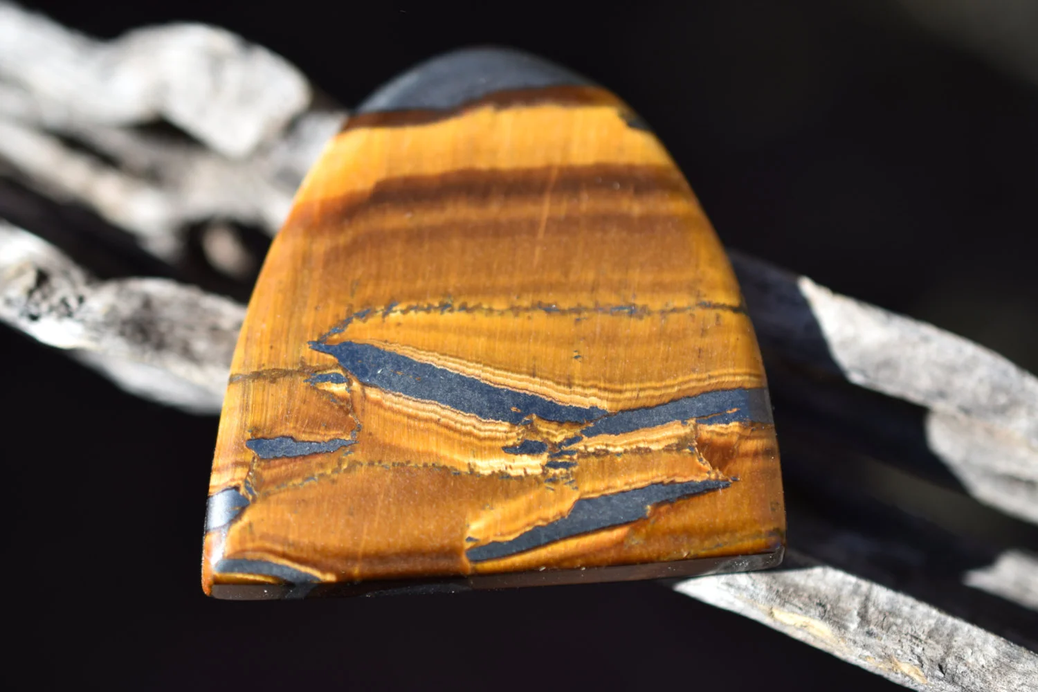 Free form Tiger Eye with Hematite from South Africa. Polished on all sides, great for wire wrapping, bezel or prong set.