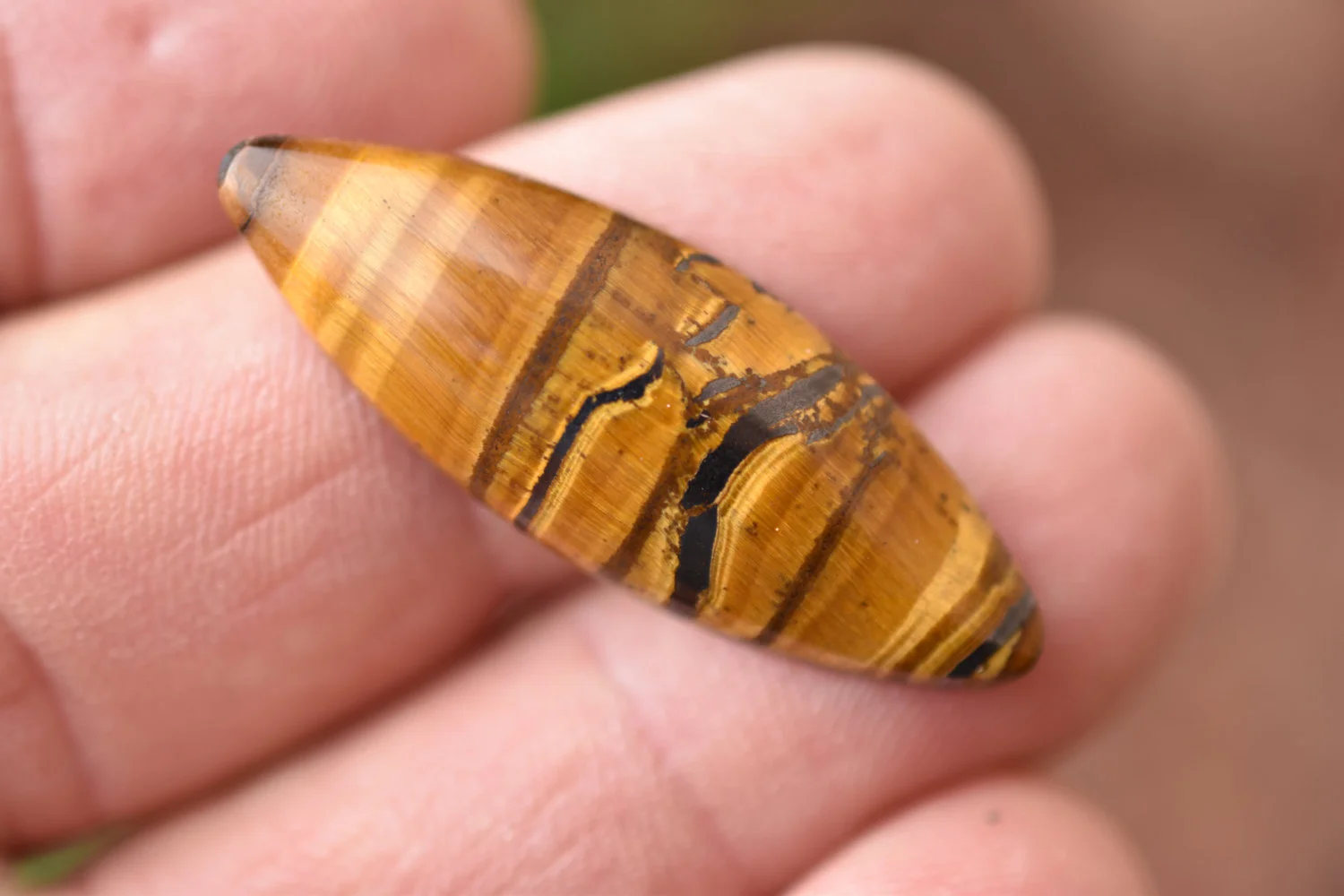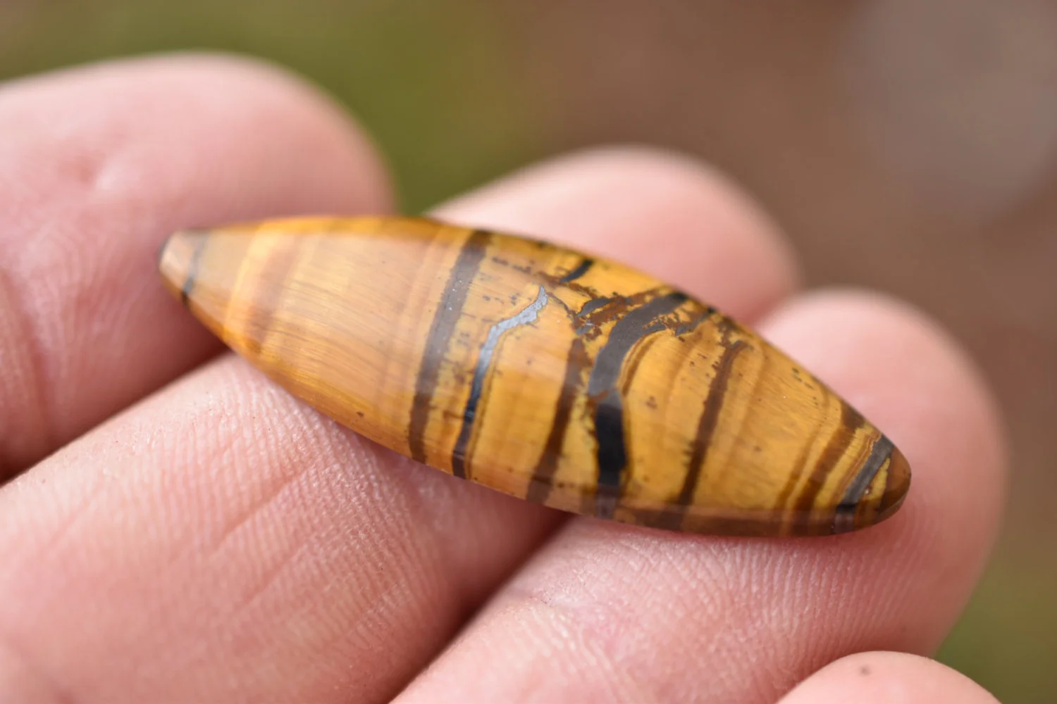 Can you see it? We sure can! "El Bandito" Tiger Eye from South Africa. Polished on all sides, great for wire wrapping, bezel or prong set.